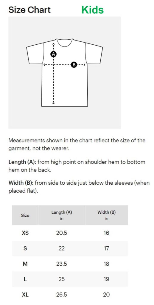Only unisex adult sized shirts are shown, but if the smallest adult size is too large for a child that you’d like to buy one for, let us know and we can create the kid-sized version.